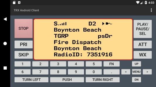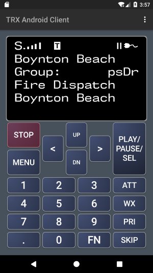 TRX Android Suite is a streaming client/server for many of the latest Whistler brand scanners. You must have access to a computer running the included Windows server application. The application suite allows you to listen to (and control) your desktop scanner via your Android device while you are across the house or across the world. Compatible with the TRX-1, TRX-2, WS-1080, WS-1088, WS-1095 & WS-1098.